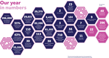 2024/25 marked the second year of our 5-year strategy to inspire more young people from diverse backgrounds to pursue careers in engineering and technology. Achieving this mission is vital for improving sustainability, achieving net zero and driving economic prosperity. With engineering and technology jobs predicted to grow faster than other sectors by 2030, the UK needs a future workforce that boosts creativity, innovation and market insight.